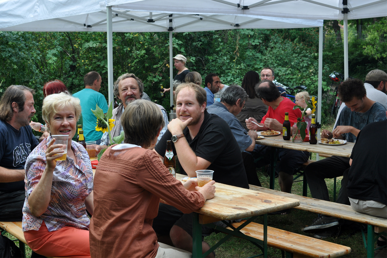Vorstandschaft des Vereins, Verantwortliche und viele Ehrenamtliche der Wärmestube und natürlich Klienten und Gäste der Einrichtung in der Rüdigerstraße feierten gemeinsam ihr traditionelles Sommerfest auf einer idyllisch gelegenen und gut versteckten Wiese an der Würzburger Umweltstation. Bernhard Christof, 2. Vorsitzender des Vereins, freute sich gemeinsam mit den Anwesenden besonders über das Kommen von Paul Lehrieder (MdB), dem 1. Vorsitzenden und Robert Scheller, Sozialreferent bei der Stadt Würzburg. Leider konnten beide nur kurz verweilen, denn das Politikerleben hat auch an Sonn- und Feiertagen viele Termine.